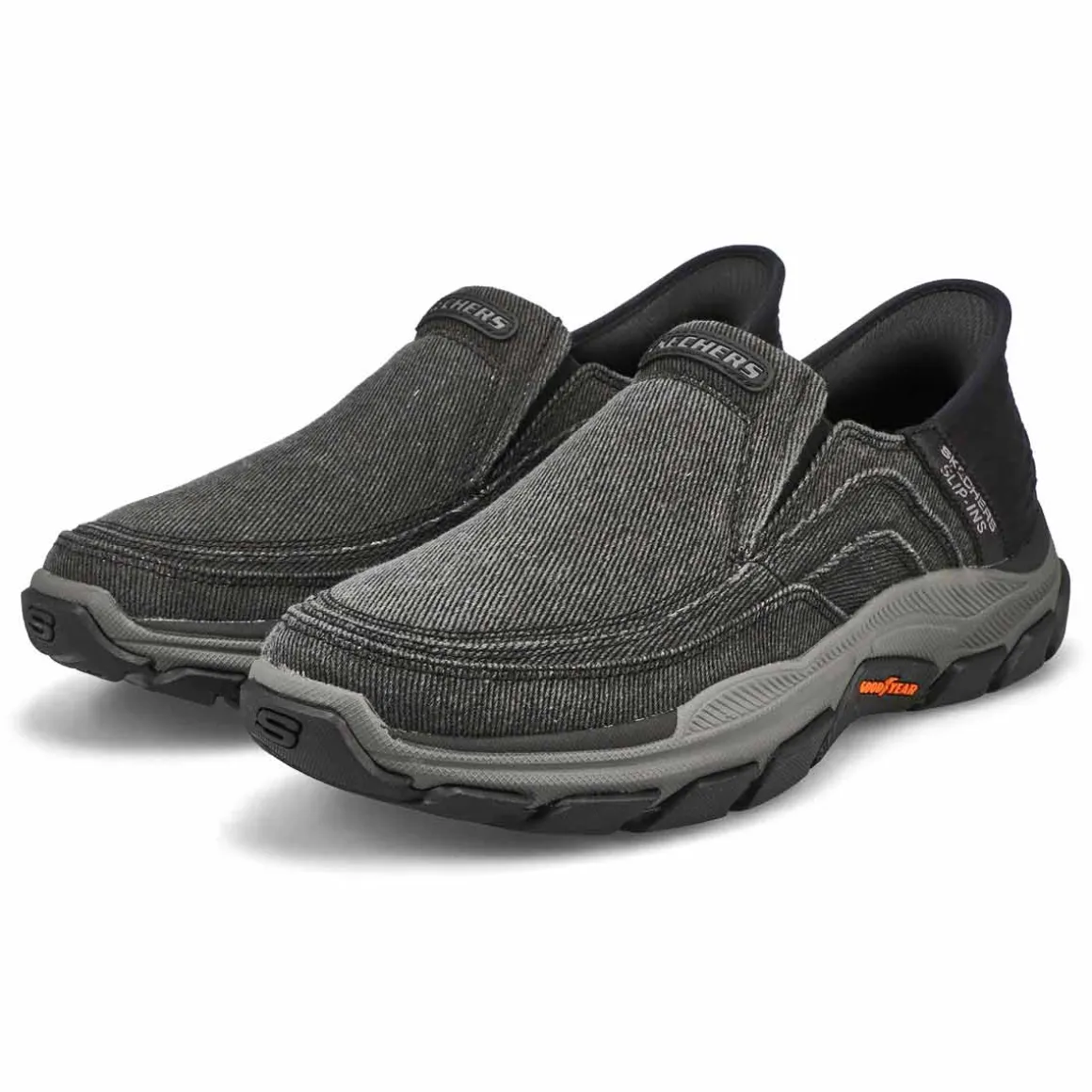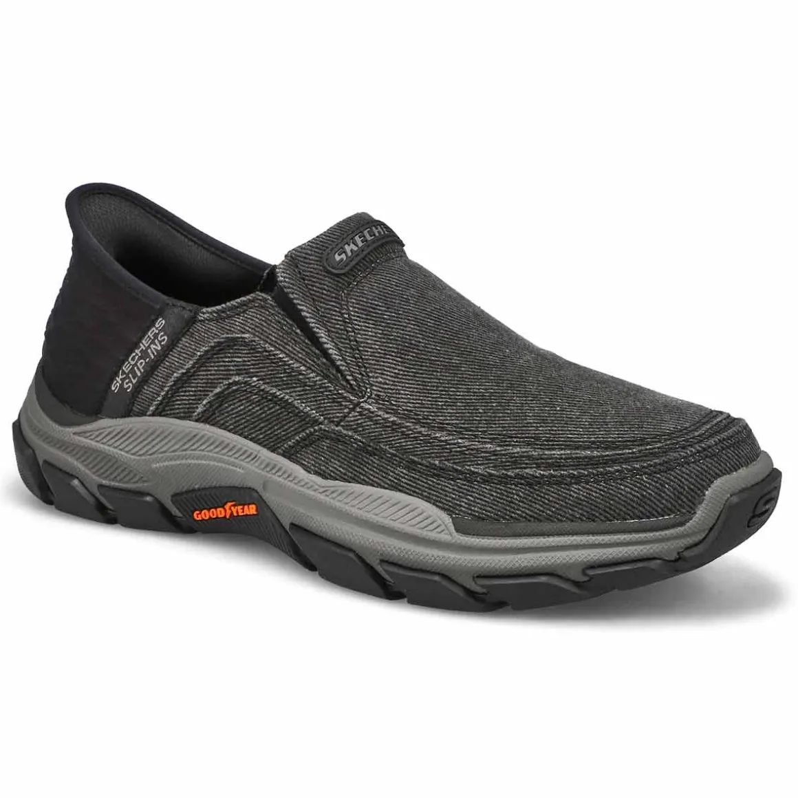 Simply step in and go wearing the Hands Free Slip-Ins Relaxed Fit Respected Holmgren taupe shoe from Skechers. Designed with our exclusive Heel Pillow. This laceless style features a canvas upper with twin gore panels for ease of wear, a Skechers Air-Cooled Memory Foam comfort insole, Goga Mat Arch cushioning and an anti-slip Goodyear Rubber Outsole.