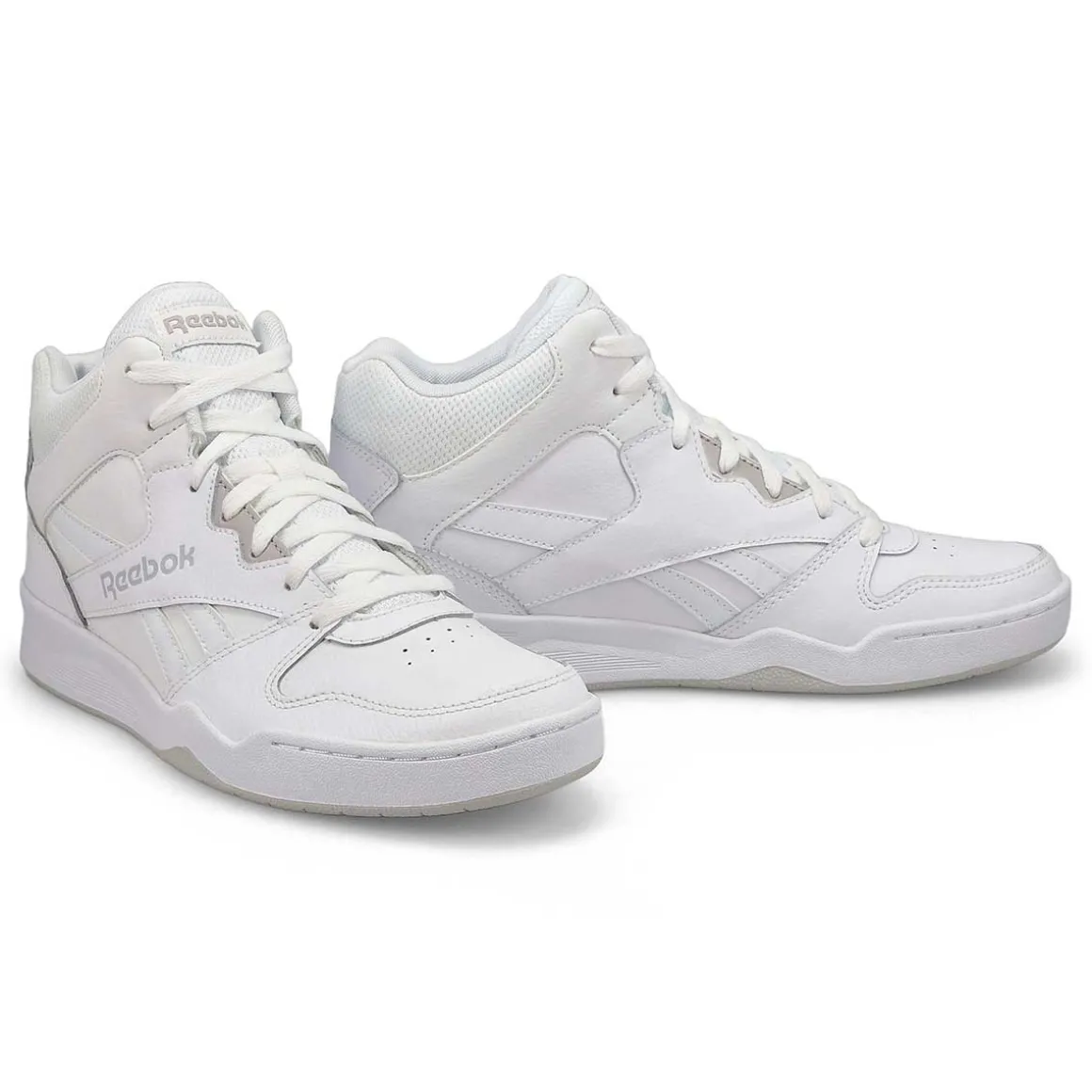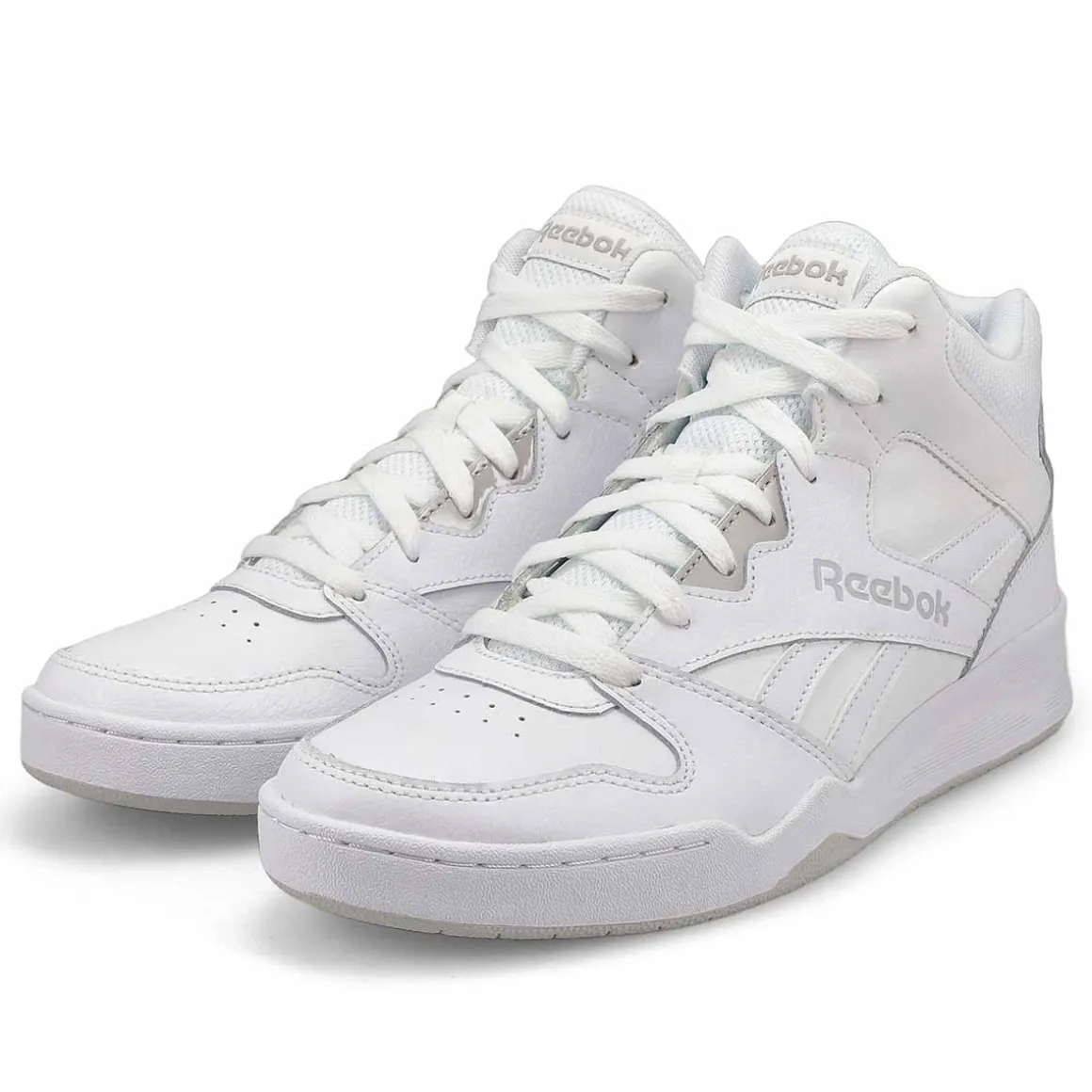 Show your respect for the game while keeping classic, everyday style on point. The Royal BB4500 Hi2 Hi Top white/ grey mid-cut, basketball-inspired sneaker from Reebok are sure to be an instant favorite, with a blended leather and mesh upper weighing in for heritage comfort. Plus, a removable sockliner helps keeps feet happy all day long.