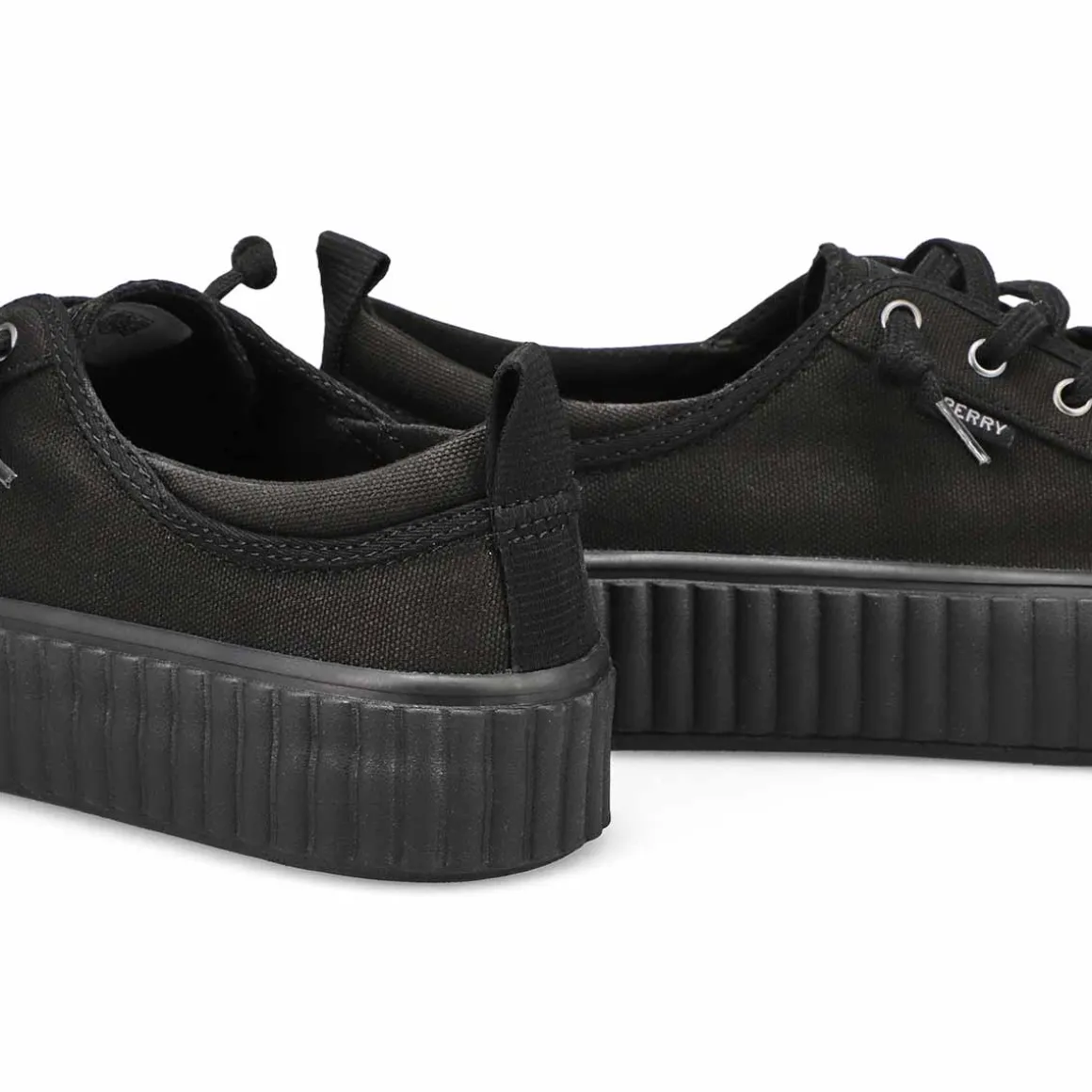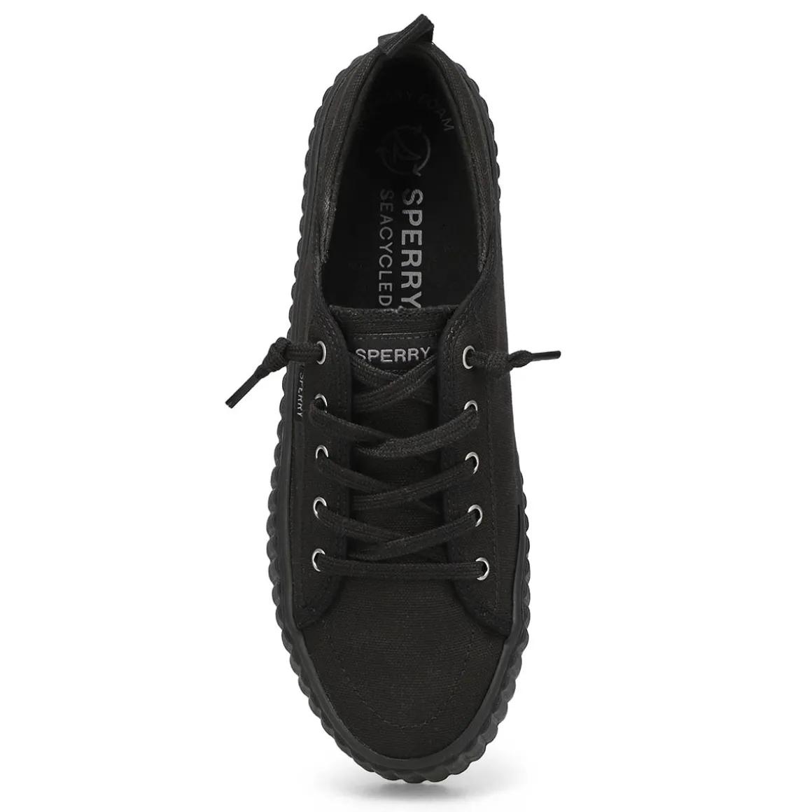 Diversify your everyday wardrobe with the SeaCycled Pier Wave Platform LTT black sneaker from Sperry Top-Sider. As a part of the SeaCycled Collection, this pair sports a cotton upper made of 100% recycled materials. The chunky platform sole adds some trendy flair. Memory foam cushioned footbed provides all-day underfoot comfort. Outfitted with a hidden gore entry for easy on/off wear and a lace-to-toe design with knotted cotton laces,