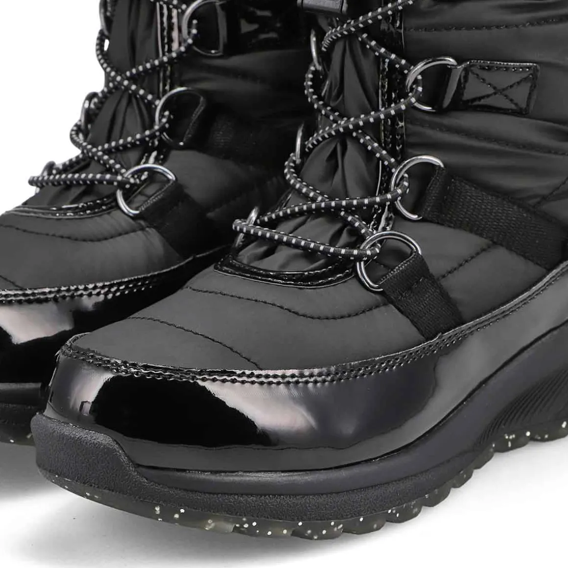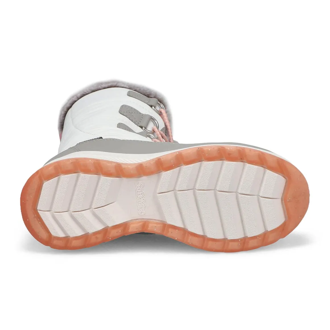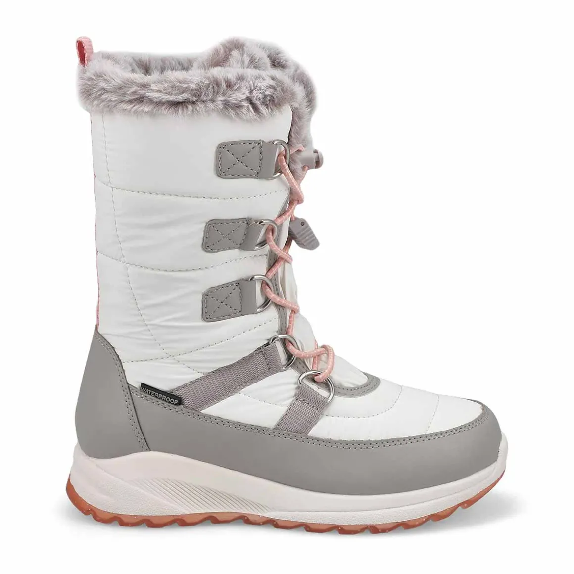 The Selena white waterproof boot from SoftMoc featurers a waterproof nylon upper with soft, faux fur collar and polar plush lining. Slip resistant traction outsole. Themolight insulation , built with lightweight construction in mind. You will want to make the Selena white waterproof winter boot part of your little one’s must-have list for this season!