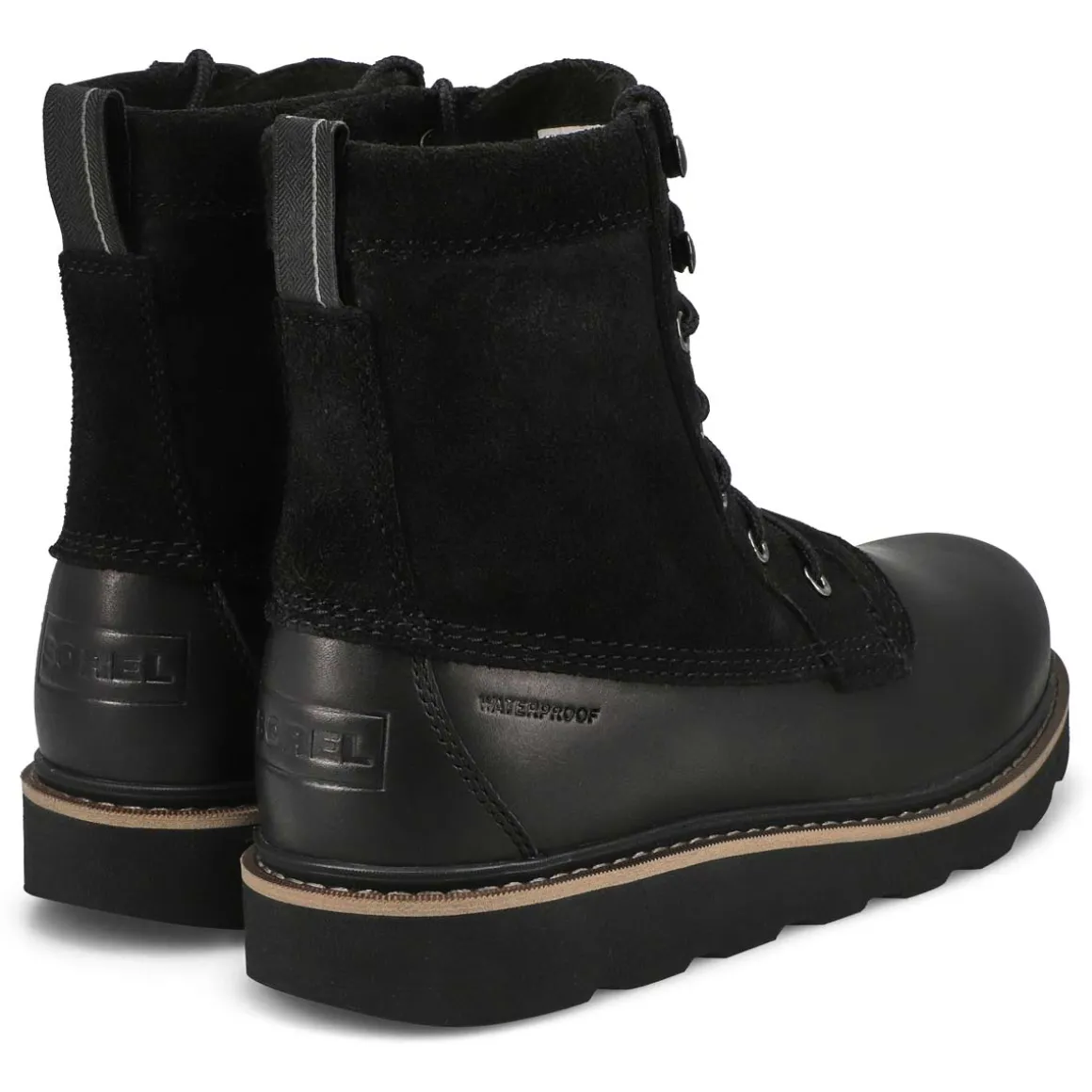 The Slabtown 62 Caribou waterproof boots from Sorel combine work boot durability with street-ready style. Designed with a waterproof leather suede top. Designed with a removable molded EVA footbed with textile topcover. Smooth lining with a padded molded insole. Please note: Laces and zippers incorporated in SOREL footwear are not waterproof.