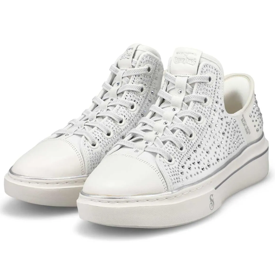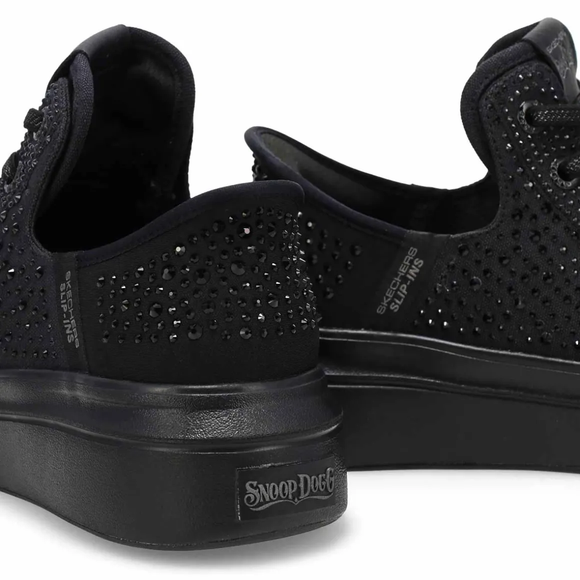 Step into another level of comfort and the flavor of Snoop with the Skechers x Snoop Dogg collection – sneakers for all walks of life. The Skechers Hands Free Slip-ins x Snoop Dogg: Snoop One -Rhine-Stoned is designed with Skechers’ exclusive Heel Pillow, this flossed-up version of the Snoop One features a rhinestone and studded canvas upper with metallic midsole trim and hands-free wearability that you can Just Slip In to, Snoop Style.
