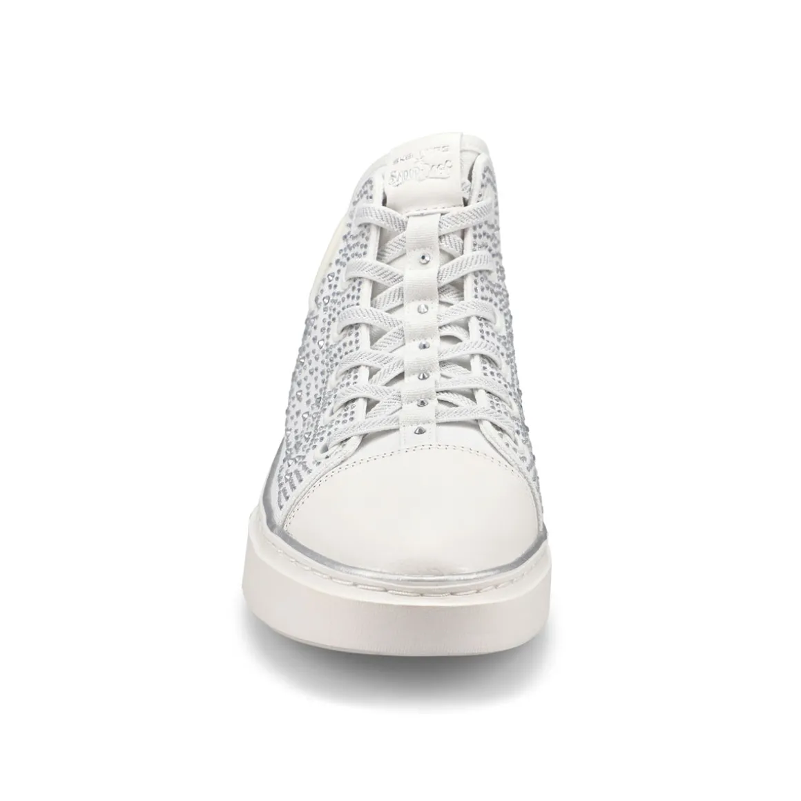- Rhinestone and studded canvas upper with synthetic toe cap