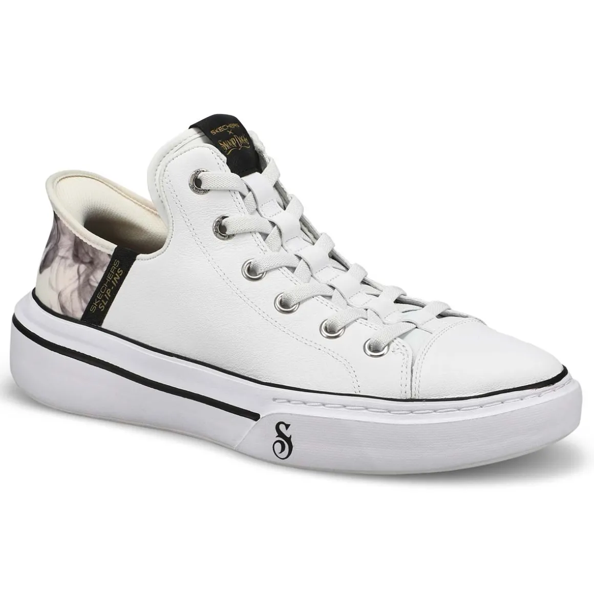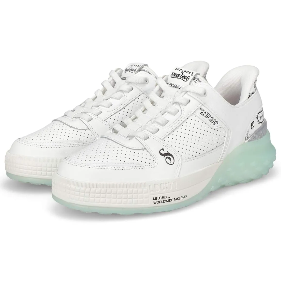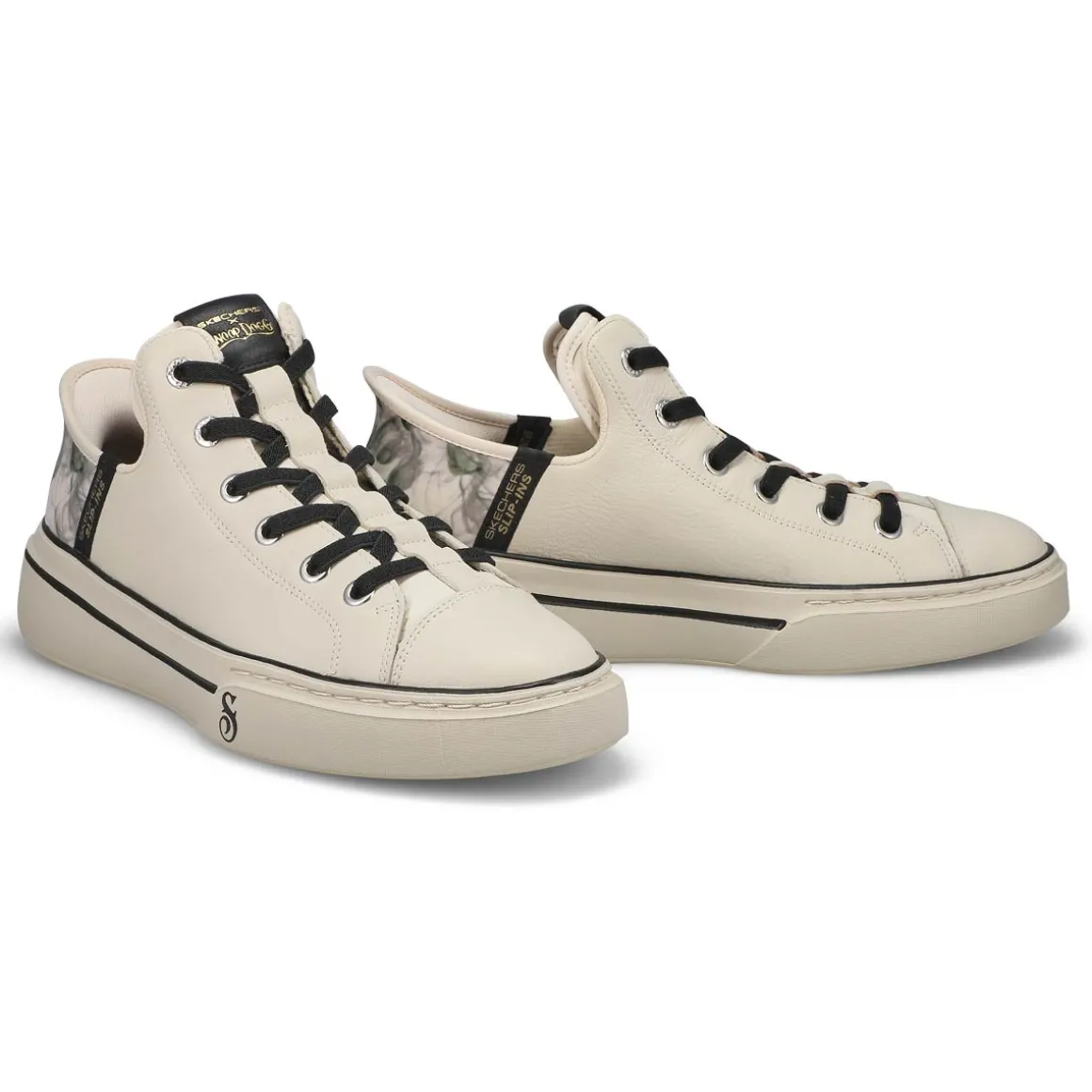 Step into another level of comfort and the flavor of Snoop with the Skechers x Snoop Dogg collection – sneakers for all walks of life.Introducing the Skechers Hands Free Slip-ins x Snoop Dogg Sizzle Toke Slip-ins. This fly and fresh court style lace-up is as unique as the D-O-Double G himself. Designed with Skechers’ exclusive Heel Pillow and featuring a genuine leather upper with metallic and paisley print heel detail, a wrapped outsole, and an oh-so-cushy Air-Cooled Memory Foam insole.
