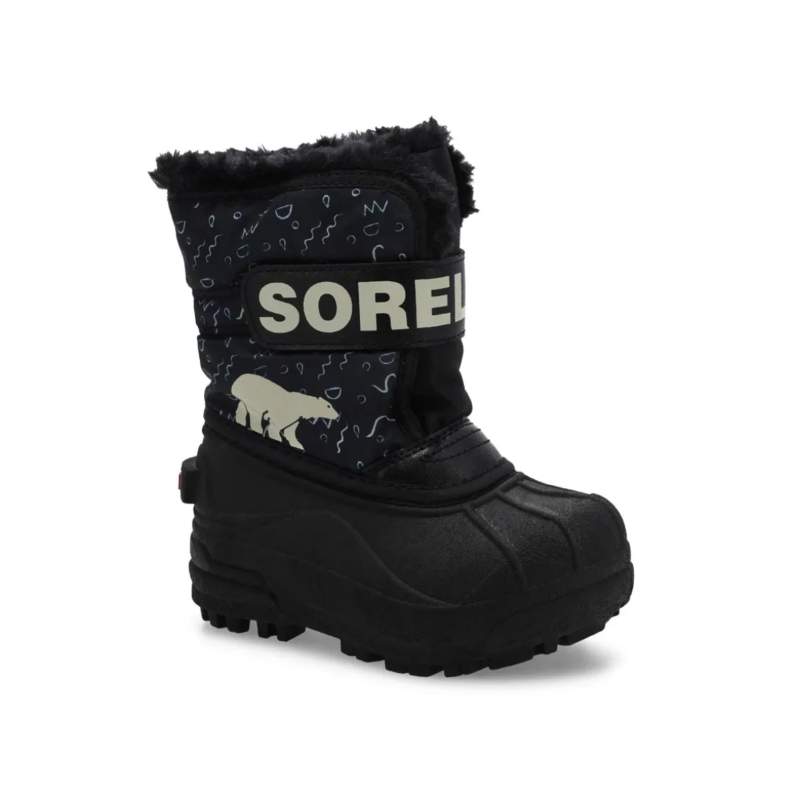 They’ll show the snow who’s boss with this burly Snow Commander boot in black/ charcoal by Sorel, featuring a waterproof rubber shell, 200g insulation, and a hook and loop closure system at the top of the shaft to lock out the elements. Your little ones will be warm and dry while they enjoy the snow!