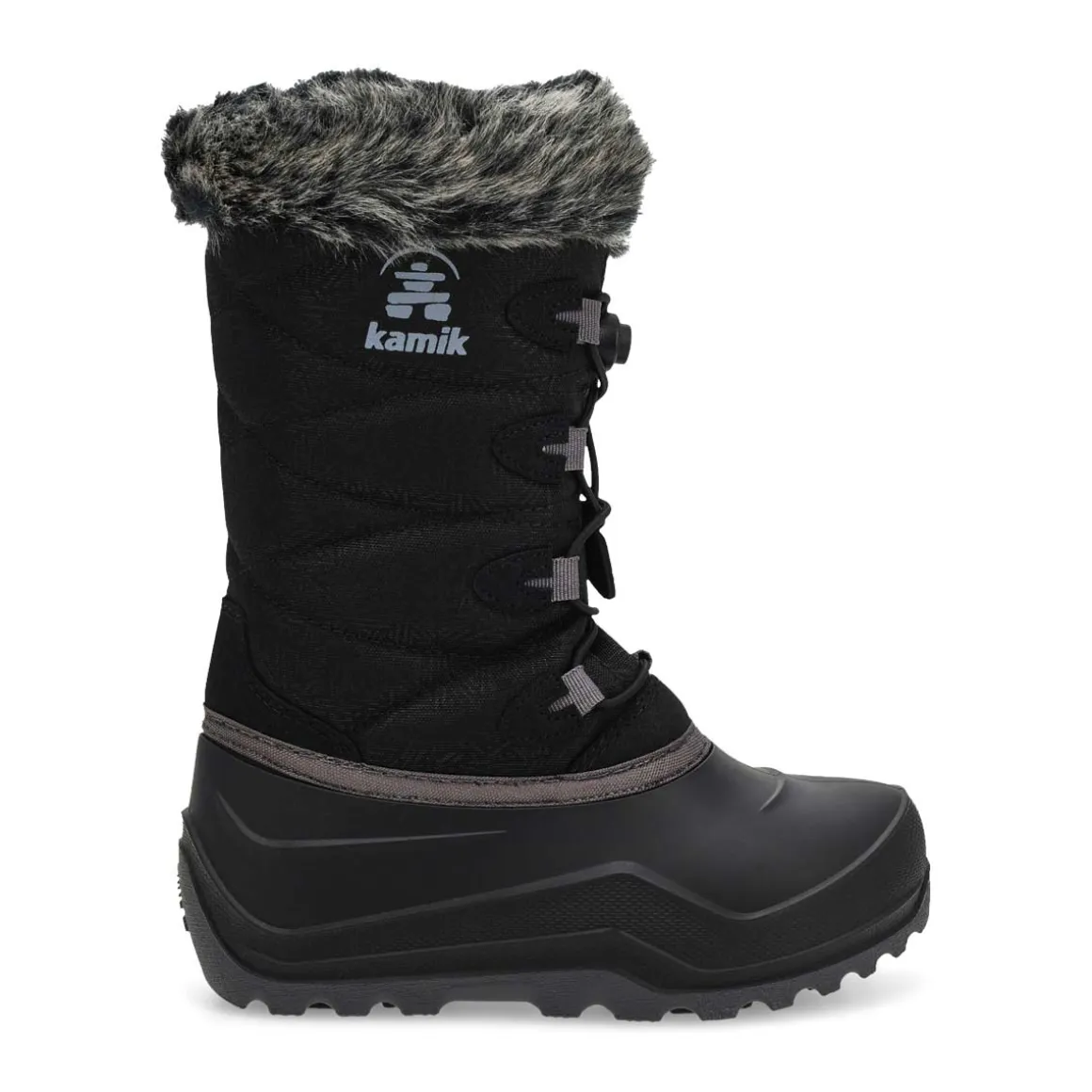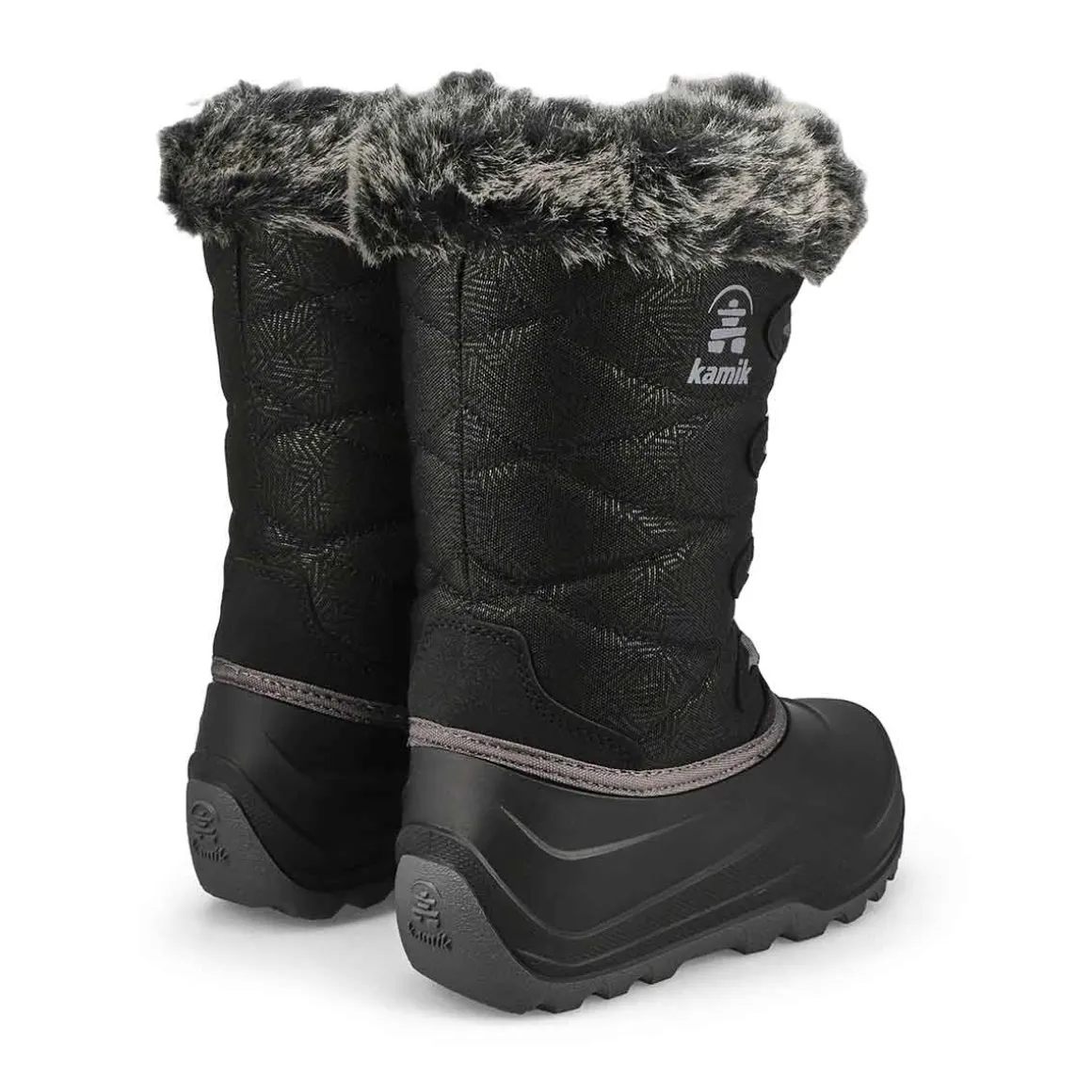 The Canadian-made Snowangel charcoal/ orchid winter boot from Kamik is an insulated boot that has what it takes to keep your little angel cozy, toasty and happy all winter long. Comfortable down to -40F/-40C , designed with a waterproof and recyclable lightweight synthetic RubberHe shell, and featuring an outsole with multi-directional treads for stability in in the deep snow, your little one can run around and make snow angels all day long.