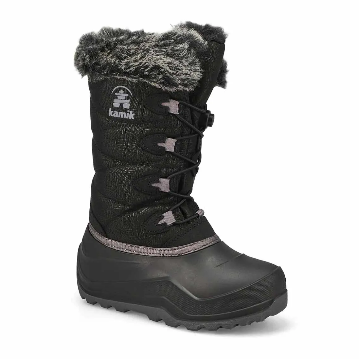 The Canadian-made Snowangel black winter boot from Kamik is an insulated boot that has what it takes to keep your little angel cozy, toasty and happy all winter long. Comfortable down to -40F/-40C , designed with a waterproof and recyclable lightweight synthetic RubberHe shell, and featuring an outsole with multi-directional treads for stability in in the deep snow, your little one can run around and make snow angels all day long.