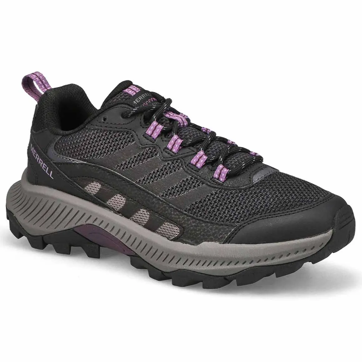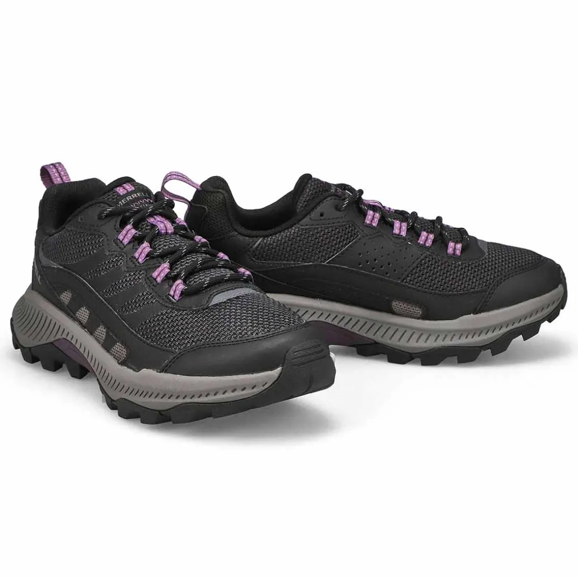 The Moab Speed black lace up hiking shoe from Merrell provides the comfort and protection of a hiking shoe, while also delivering a faster, more athletic style than traditional hikers. Packed with 100% recycled materials from the laces and webbing to the mesh lining and footbed cover, as well as a 50% recycled removable EVA foam footbed, all atop of a Merrell sticky rubber outsole with durable traction that grips when and where you need it.