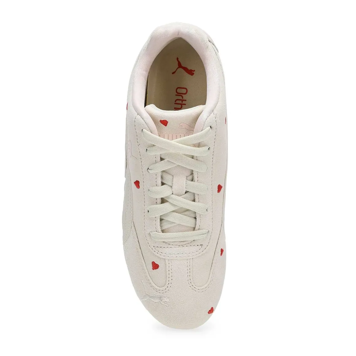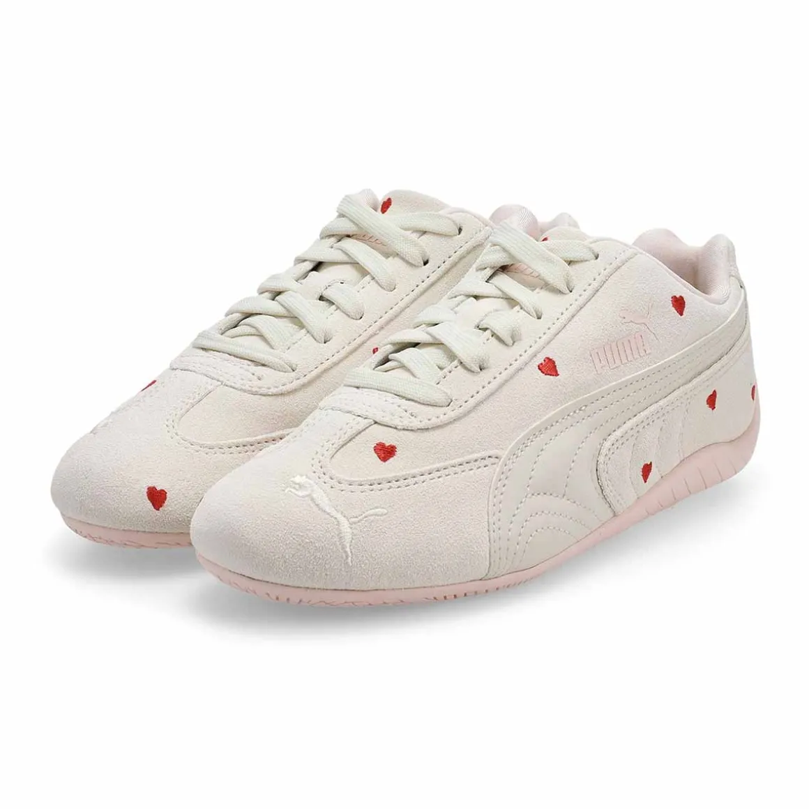 Kids will fall in love with this heart-print version of the Speedcat. Amor vapor grey/Jasmine low profile sneaker from Puma. A classic inspired by the speed of the racetrack, the Speedcat stands out from the crowd with its race-shoe-inspired shape and fast look. Small embroidered hearts make this take on the icon an instant charmer.