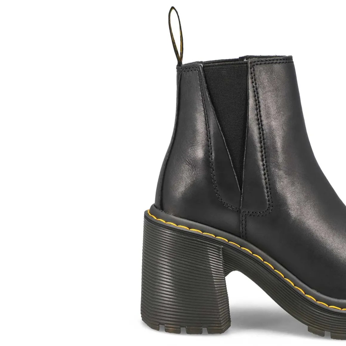 The Spence Platform black Chelsea boot from Dr.Martens is stacked high with a grooved outsole and towering flared heel — built to make you feel on top of the world. Made from a soft yet rugged new leather, Sendal, and marked with all Docs signature DNA, these hard-hitting boots are even tougher than they look.