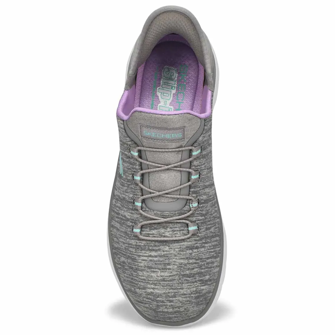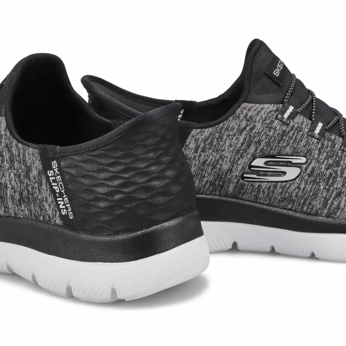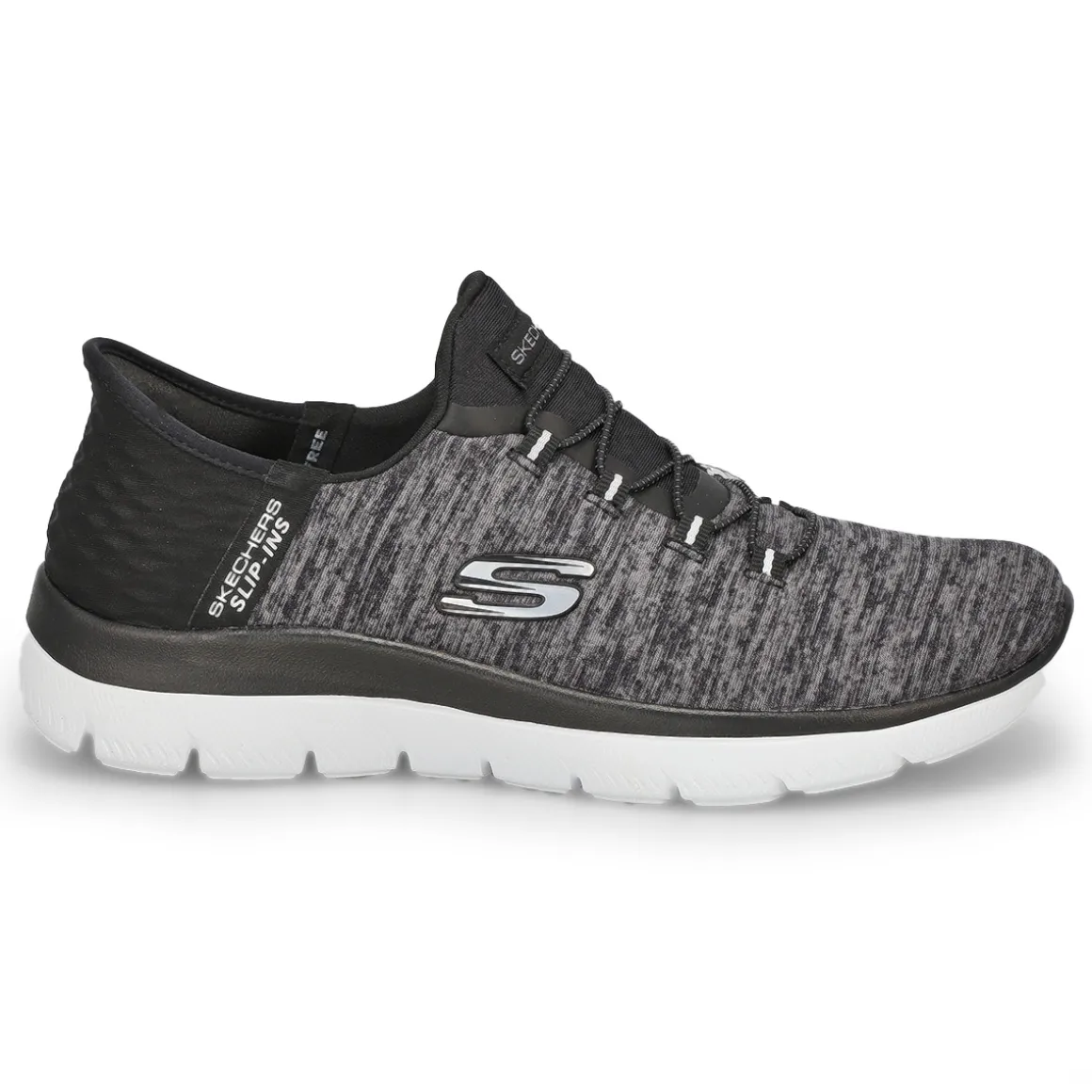Pick up the pace with increased ease-of-wear and superior comfort wearing Skechers Slip-ins Summits Sneakers. Designed with Skecher’s exclusive Heel Pillow, this vegan style features a soft heathered jersey knit upper with fixed stretch laces and a cushioned Skechers Air-Cooled Memory Foam comfort insole. Lightweight flexible shock-absorbing midsole. Flexible traction outsole. Machine washable.