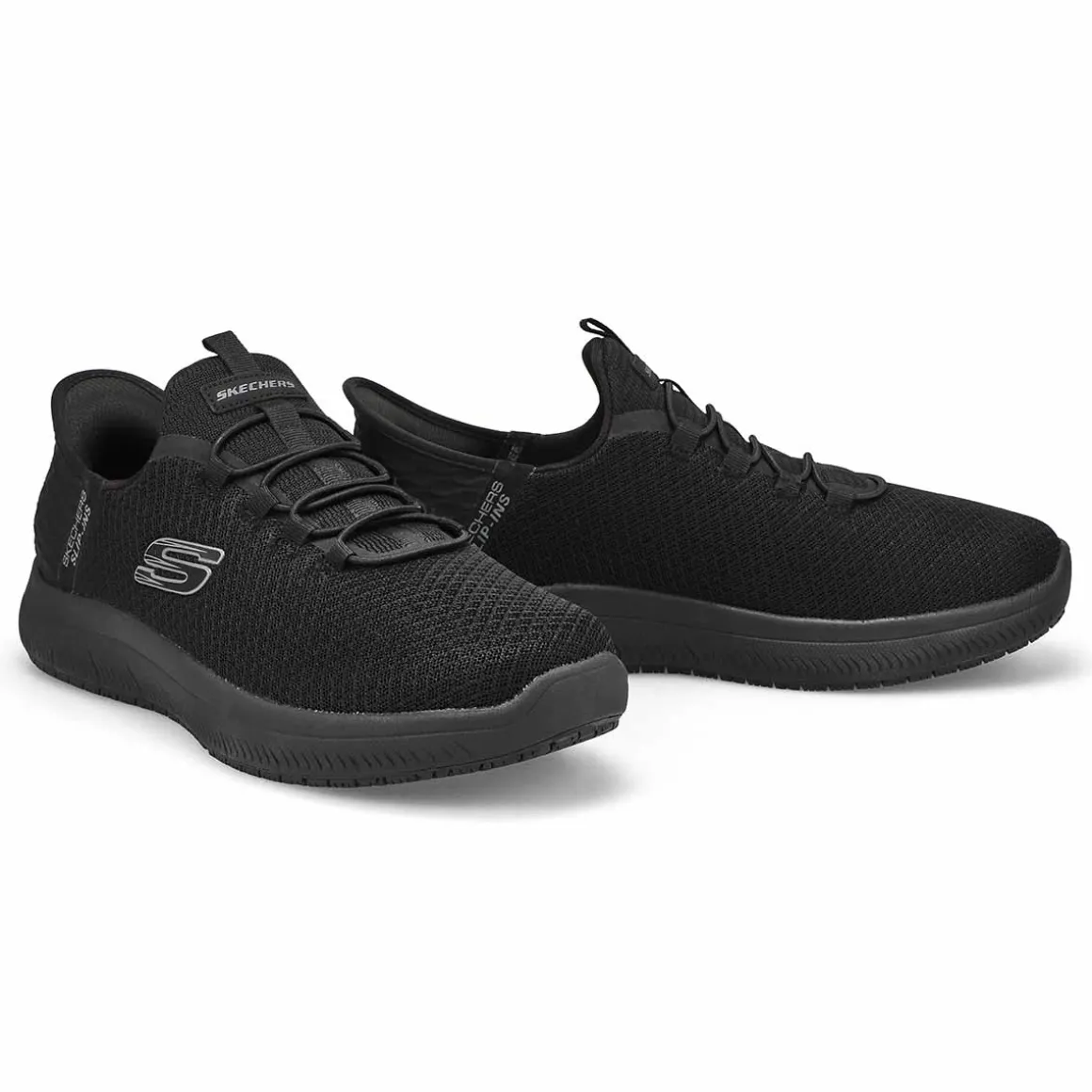 Experience slip-resistant safety with Slip-Ins convenience wearing the Skechers Hands Free Slip-Ins Work: Summits Slip Resistant Sneaker. This Touchless Fit work style features a knit mesh and synthetic upper with Skechers’ exclusive Heel Pillow, a slip-resistant outsole, plus a Skechers Air-Cooled Memory Foam cushioned comfort insole. Slip-resistant traction outsole. Wide Width.