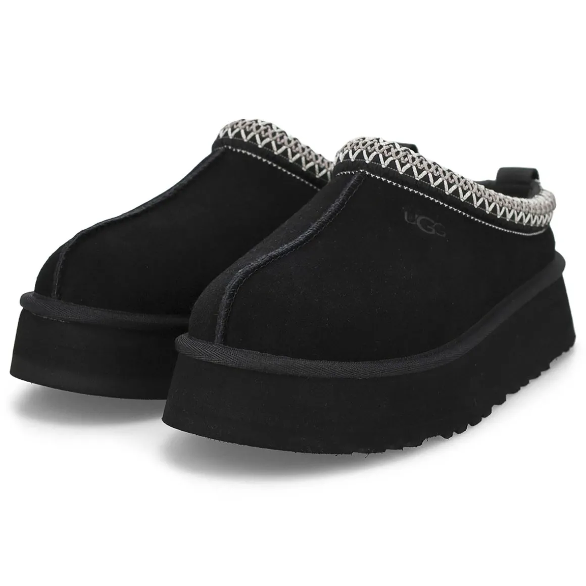 Lightweight platform? UGGbraid detail? Endless wearability? Check, check, check! The Tazz II Platform black slipper from UGG keeps the ease and comfort you love about UGG’s Tazz. The upper is made with smooth suede lined with plush sheepskin and the sugarcane EVA outsole has an enhanced rocker shape for effortless movement.