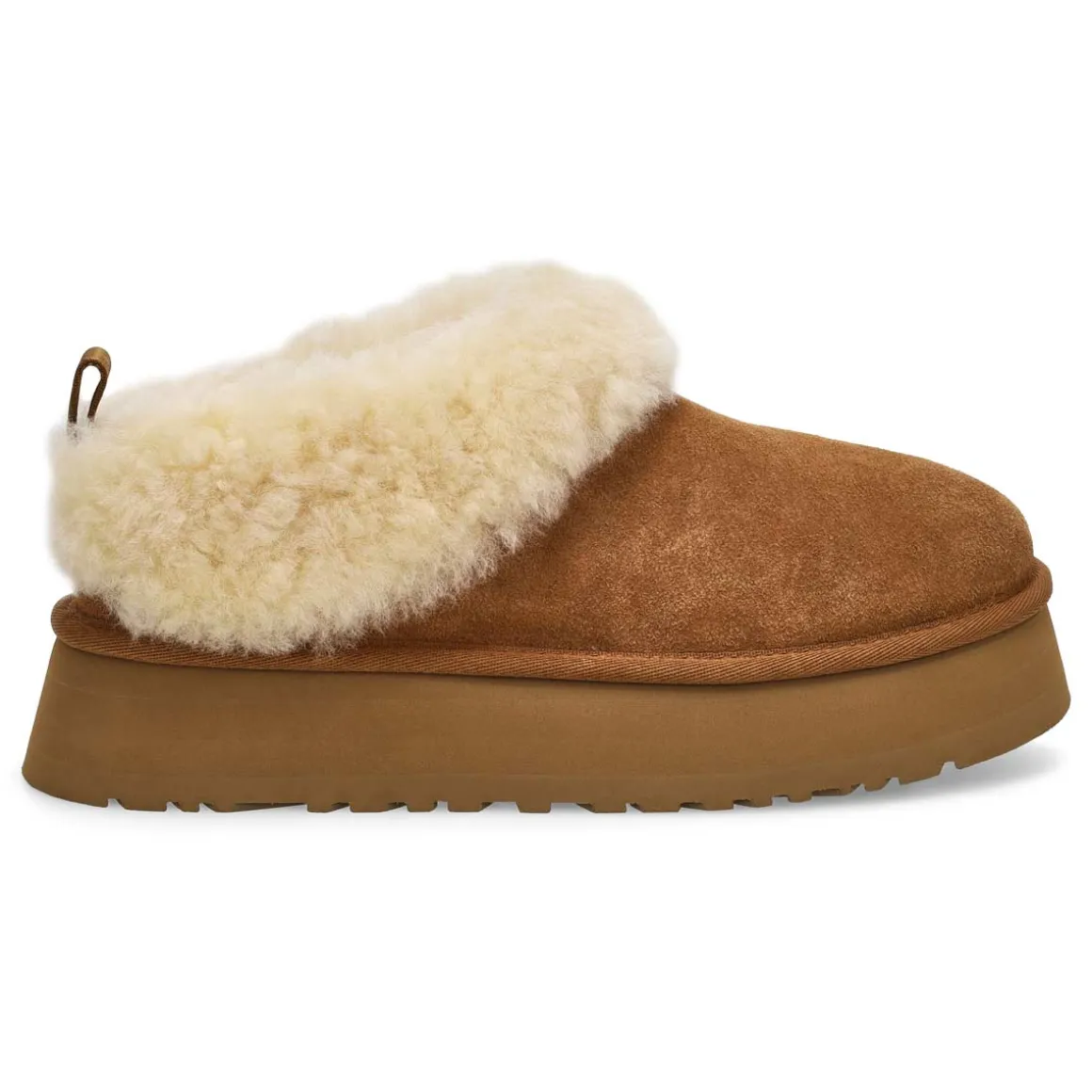 Love the Tazz but want even more UGG coziness? The Tazzelle mustard seed platform slipper is the one for you. This ultra-plush indoor-outdoor slipper features genuine suede and a lightweight 1.75 inch platform made from springy sugarcane EVA. Sheepskin lines the interior and continues onto the lush fixed cuff, so you can wear these with socks, or without.