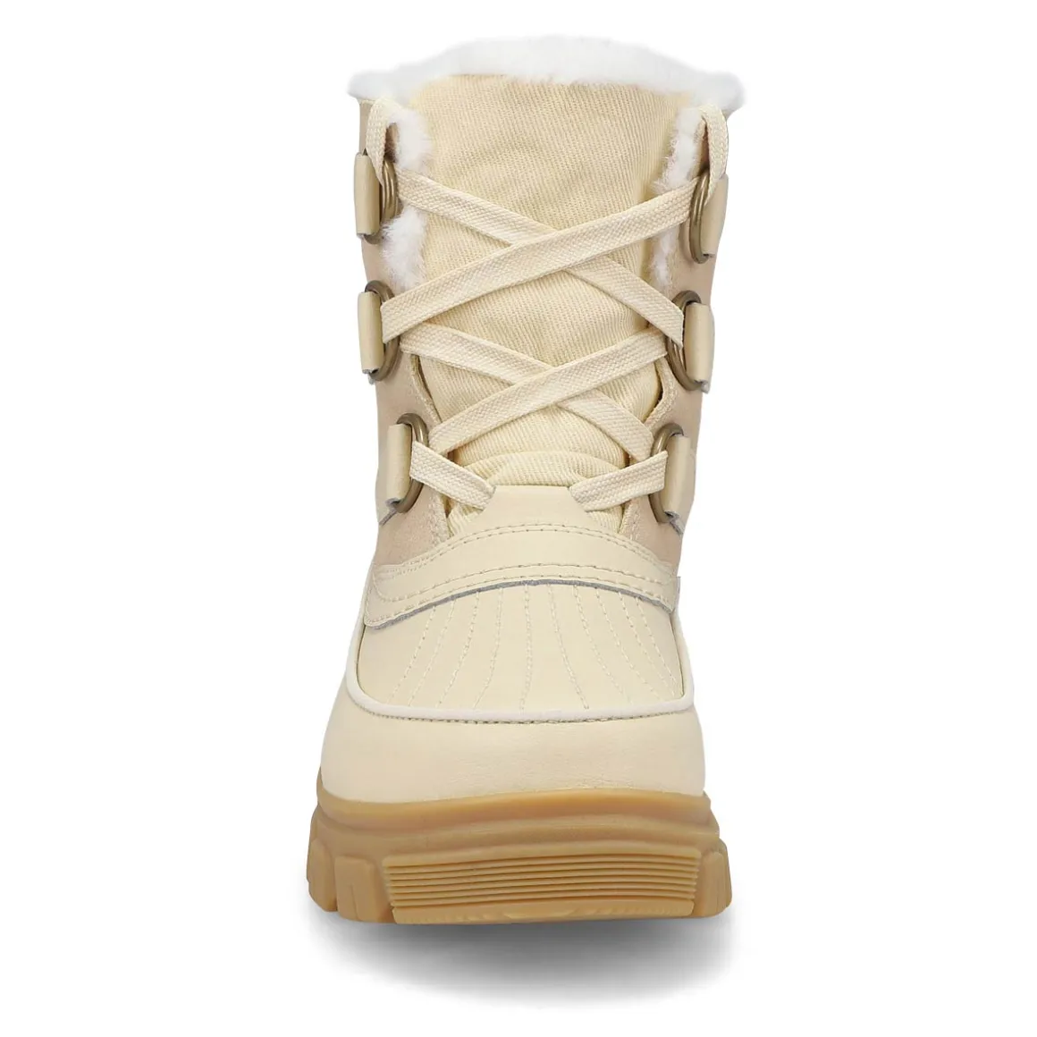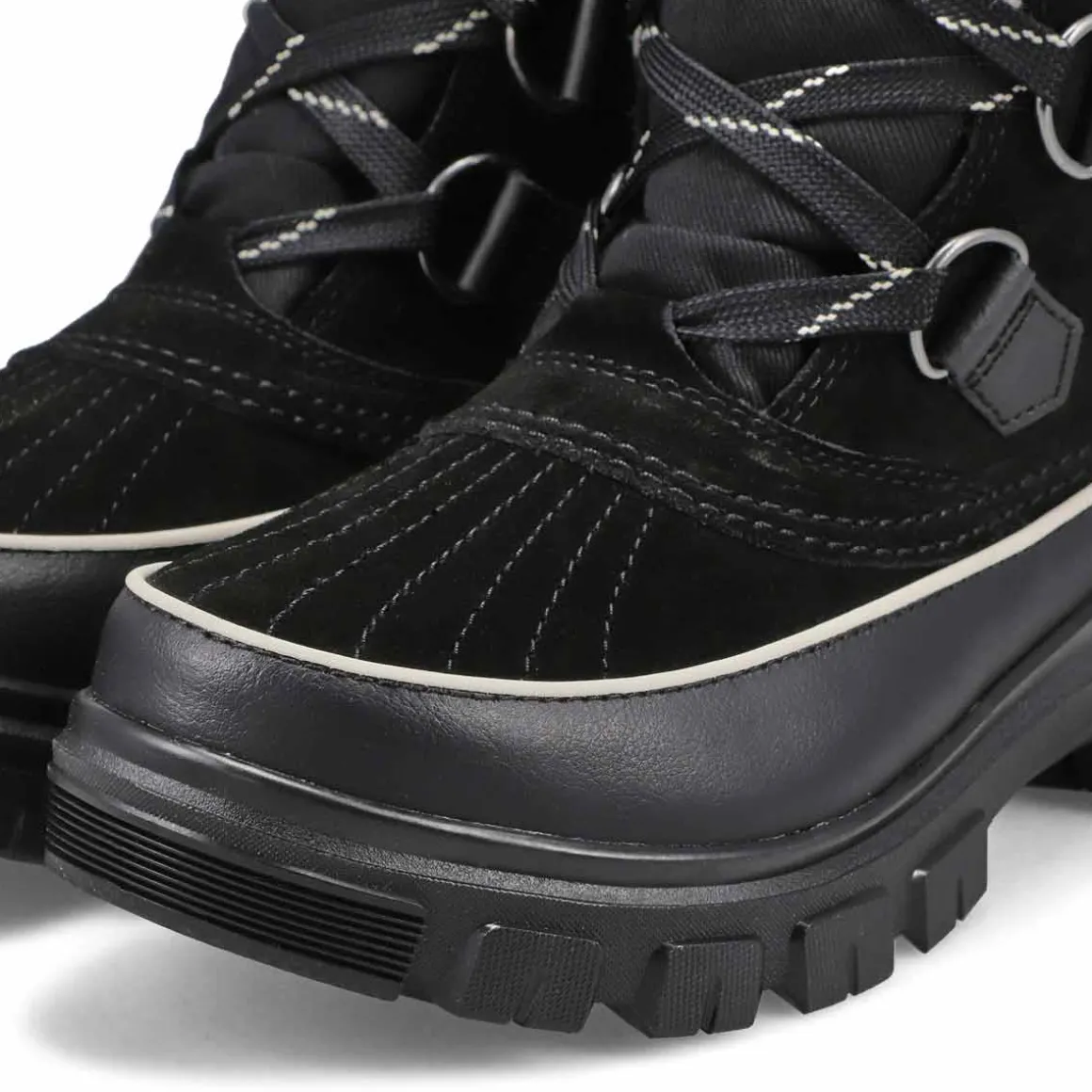 The Tivoli V curry/ black waterproof boots from Sorel features sleeker lines but the same flurry-defying functionality you love. Featuring waterproof suede with PU coated leather mudguard and heel overlayr, 200g warm insulation. Removable plush PU-like EVA footbed with microfleece topcover. Please note: Laces and zippers incorporated in SOREL footwear are not waterproof.