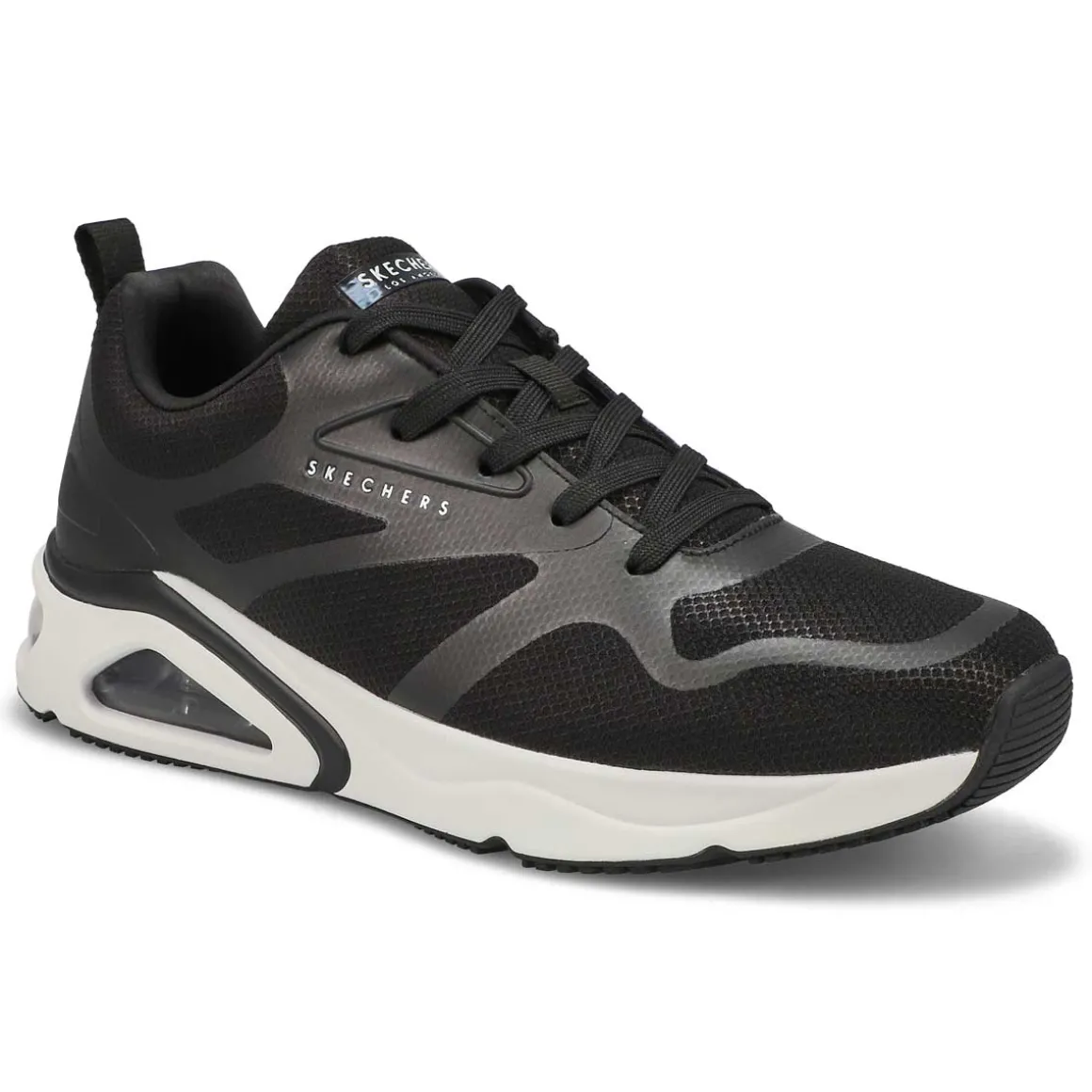 Take your style to the next level with Tres-Air Uno – Revolution-Airy black sneaker from Skechers. This athletic inspired lace-up features a sleek closed mesh upper with hotmelt overlay details, a Skechers Air-Cooled Memory Foam insole and a visible Skech-Air airbag. The Tres-Air Uno-Revolution-Airy Sneaker is designed with a flexible traction outsole.