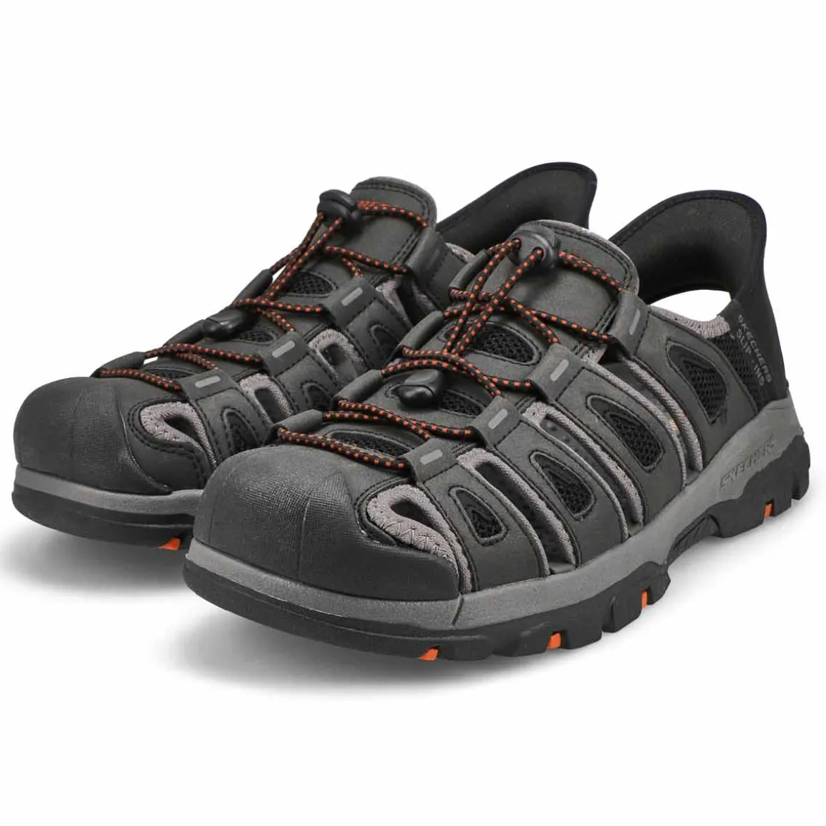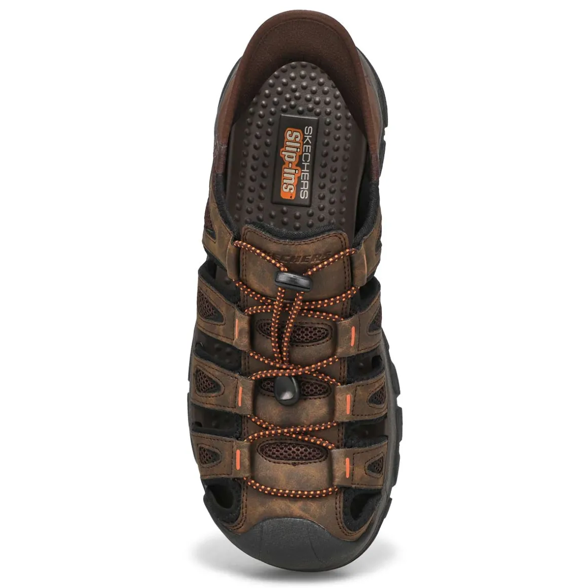 Laid-back style and comfort combines effortlessly in the Hands Free Slip-ins Tresmen Norvick chocolate fisherman sandal from Skechers. Designed with a supportive Heel Pillow, this fisherman style sandal features a synthetic upper with a toggle front, back heel piece and a cushioned comfort footbed. Relaxed Fit for a roomy comfort fit at toe and forefoot.