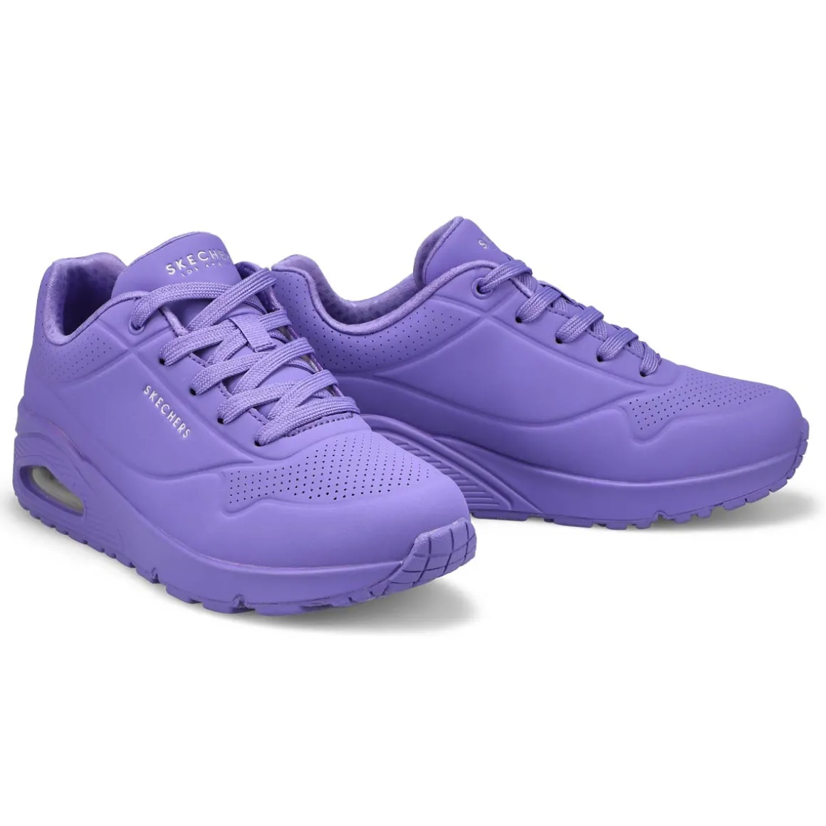 Classic air cushioned style meets updated comfort in the Stand On Air sneaker from Skechers. Smooth leather-textured synthetic upper in a lace up classic fashion sneaker with stitching and perforation accents. Air Cooled Memory Foam insole, visible air cushioned midsole. Padded collar and tongue for added comfort. Classic style midsole with embossed texture detail.