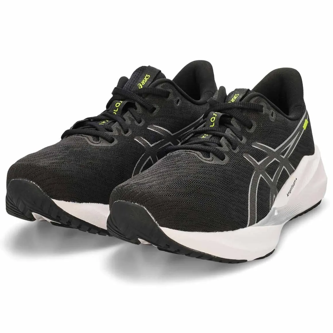 The Verablast 4 Black/Pure Silver lace up Performance Sneaker from Asics is a versatile training partner for varied workouts and running regimens. Inspired by their Blast Beyond Series, Asics wanted to make this shoe softer and lighter. It’s designed to provide good comfort for a range of activities. Push-Off: You experience even distribution from the front of the foot. Designed For Neutral/Underpronation. Wide Width.