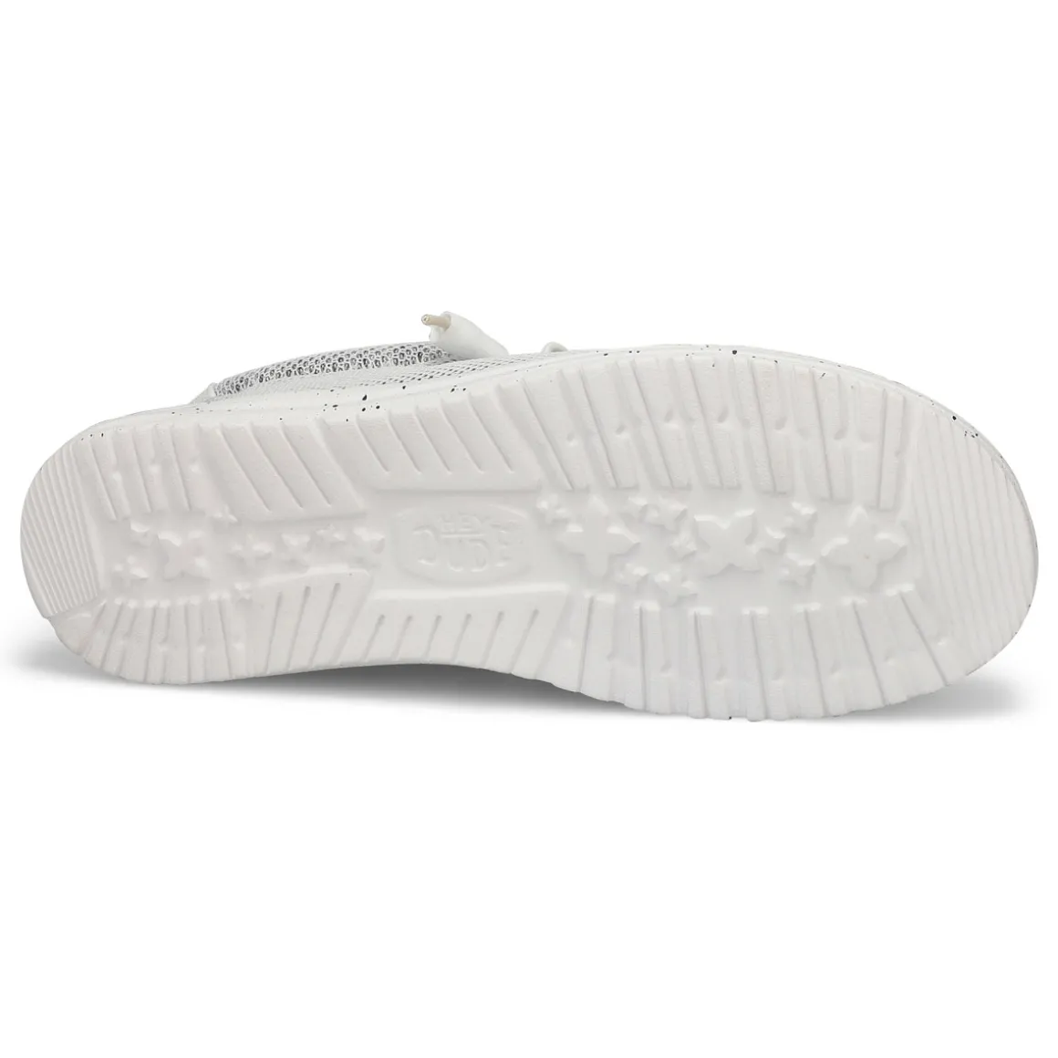The Wally Stretch Sox casual from HEYDUDE will be an instant favorite in your casual collection. Featuring a linen upper with a round toe design. Low-top, chukka construction with a soft, oxford cloth lining that surrounds the foot in comfort. Memory foam cushioned, removable insole. The Wally Stretch Sox casual shoe is designed with an ultra-light, lugged synthetic outsole.