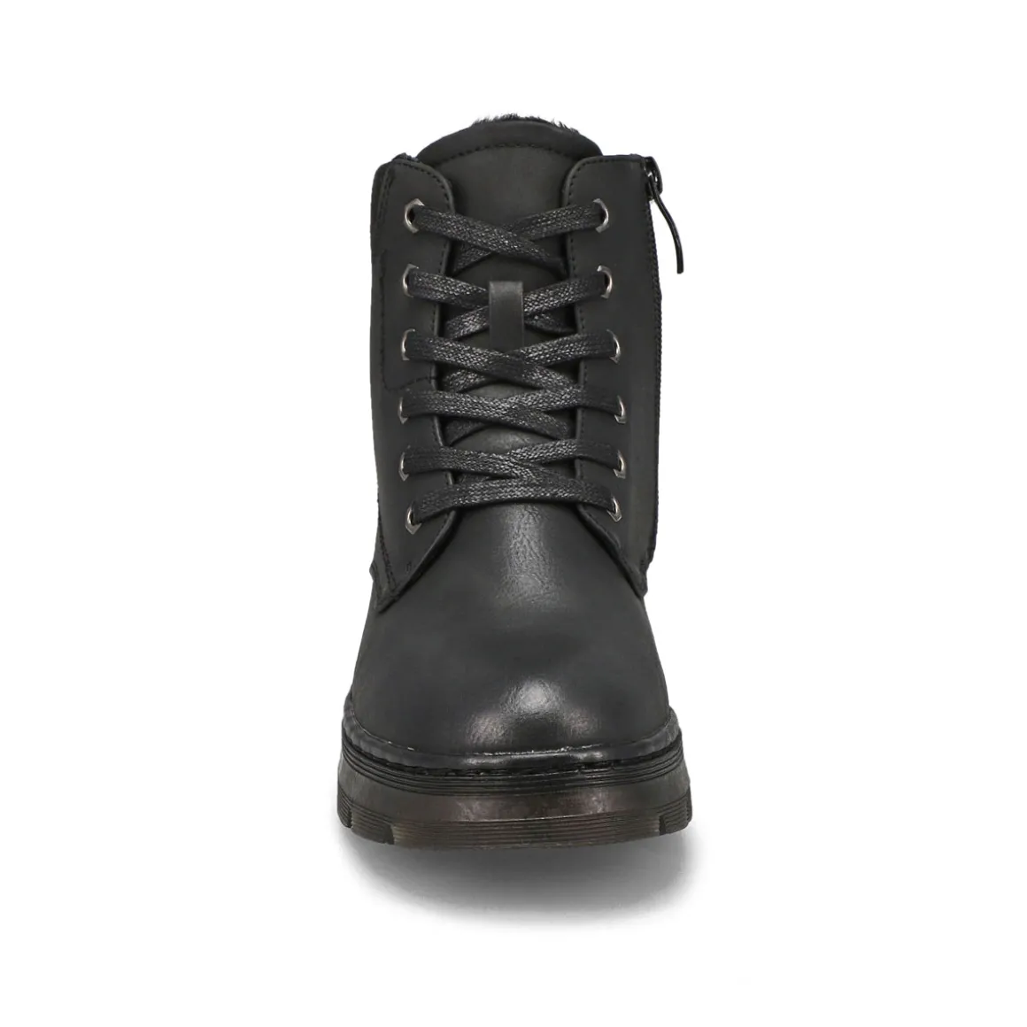 Walk in the Wednesday 02 Vegan black lace up boots from SoftMoc Vegan to feel and look good all day. Featuring a Polyurethane upper with stitch detailing. Lace up closure with a side zipper for easy on/off. Plush lining surrounds the foot in comfort. Lightly cushioned removable insole for all day comfort. Durable TR outsole.