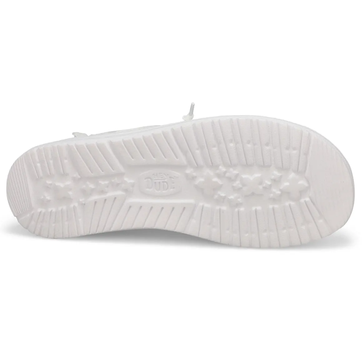 Level up your boho chic with the Wendy Crochet Lace white shoe from HEYDUDE. These flirty go-to’s weave together breezy crochet lace with a touch of fringe flair at the heel. Slip-on and go in effortless style, all thanks to our easy-on system and elastic laces. From strolls on the beach to summer soirées, these kicks will be your new warm-weather bestie.
