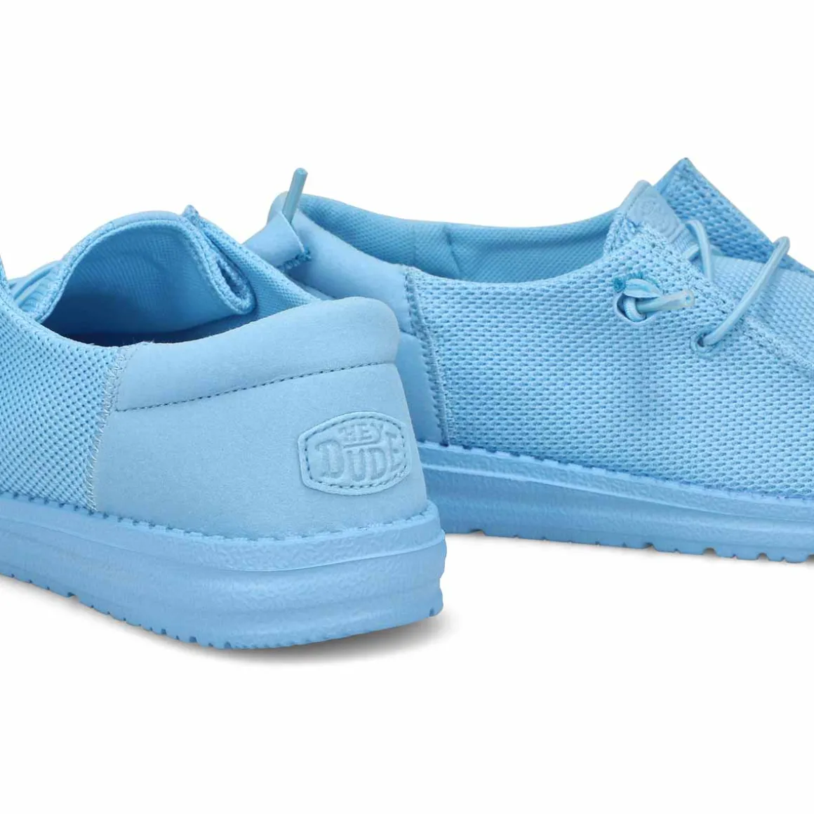 HEYDUDE’s iconic low-top moc with a custom look. Plus a little extra height and a little extra cushion. The Wendy Funk Mono Casual light pink shoe from HEYDUDE is still super lightweight. Easy-On system and their patented UltraLIGHT EVA outsole for superior comfort. Featuring contrasting textures and hand-stitching at the heel.
