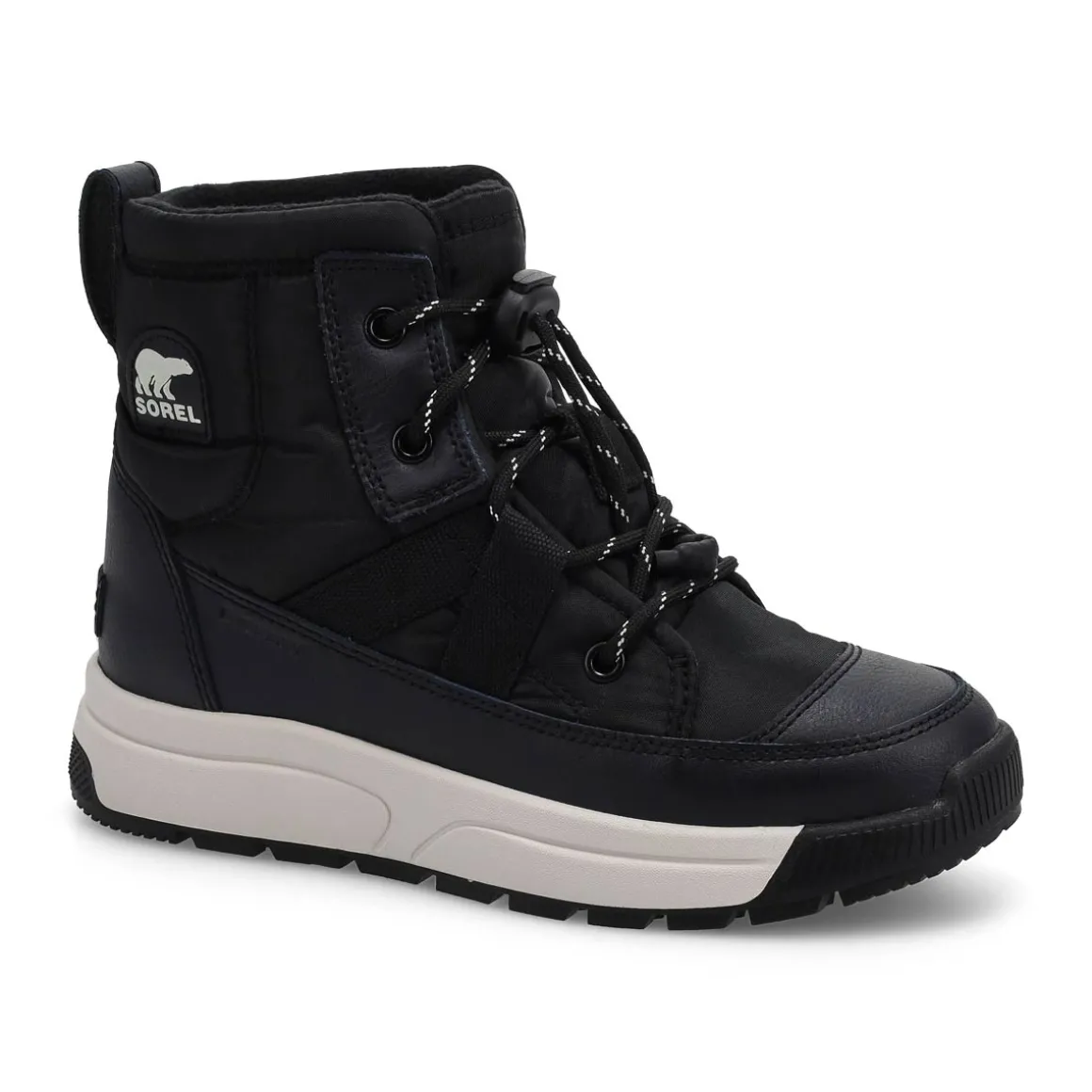 Your favorite cold-weather boot just got even better. Sorel kept the insulated warmth and lightweight, sporty style, and refreshed it with a roomier toe, more cushion underfoot and serious tread. Your little one will love playing in the snow in the Whitney III Mid Waterproof Winter Boot from Sorel. Waterproof nylon upper and PU coated synthetic overlays. Laces are not waterproof.