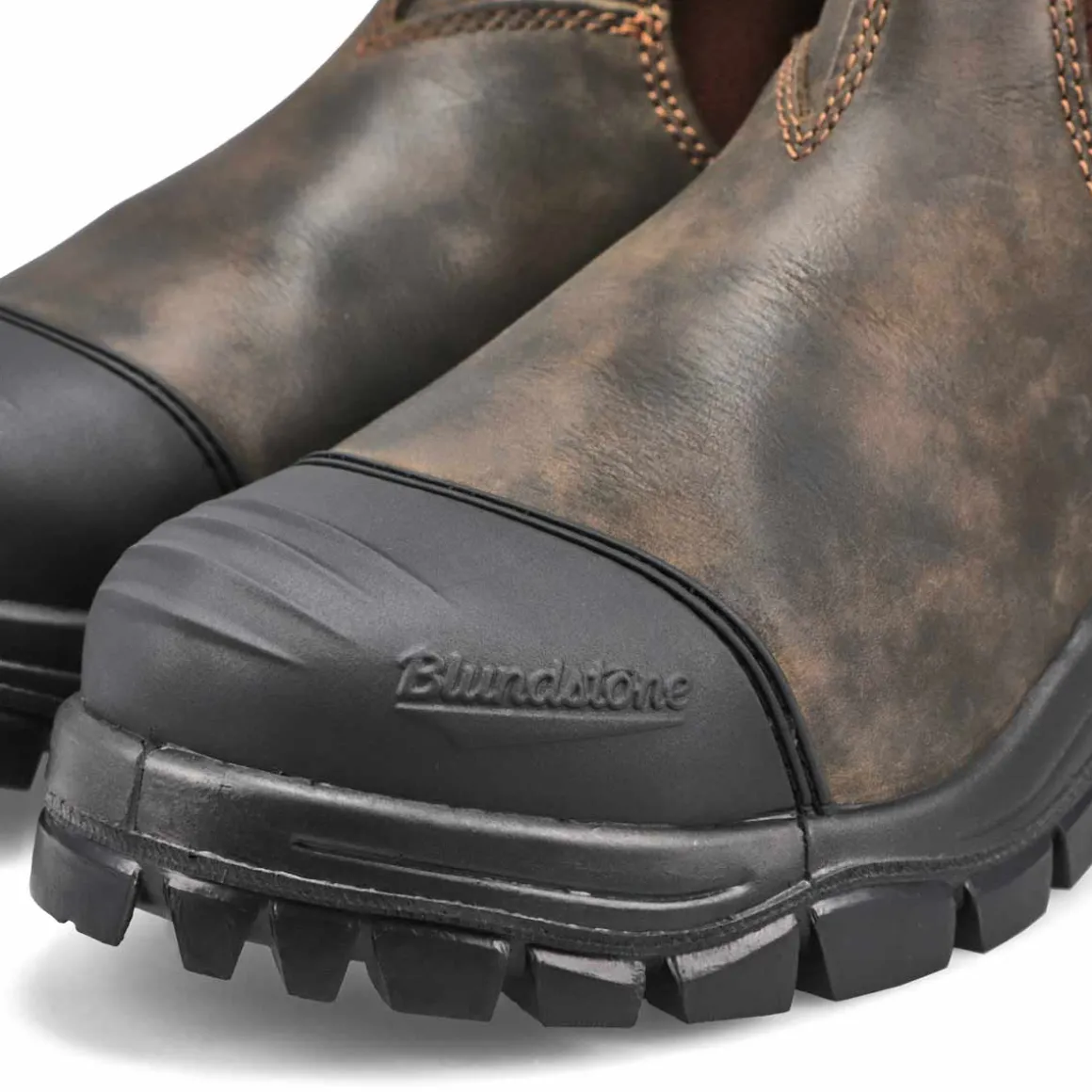 Blundstone CSA-approved 968 Work & Safety XFR boots in Black. These pull on work boots stand on a thicker, grippier, solid rubber lug sole for safe, long-wearing, all-season comfort and stability. Work boots for women and men with Comfort Arch footbeds to reduce stress on bones and joints, cushioning heel-strike impact by up to 90%. Tough-as-nails Blundstone steel toe boots with rubber toe caps to protect the boot itself and extend service life. Step up to comfort and safety that won’t let you down.