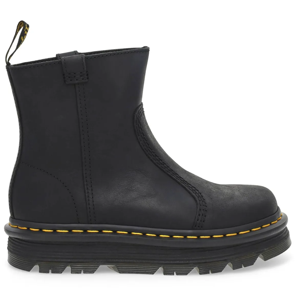 Easy comfort, easy go. The Zebzag Rigger Puul On Boot from Dr. Martens has a silhouette inspired by industrial footwear — rebuilt for easy living and even easier styling. Made with rugged Wyoming leather with dual pull tabs on either side — so you can pull on and head out. The ergonomic Zebzag sole combines lightweight EVA and durable PVC to give your feet an easy ride without limiting your destination.