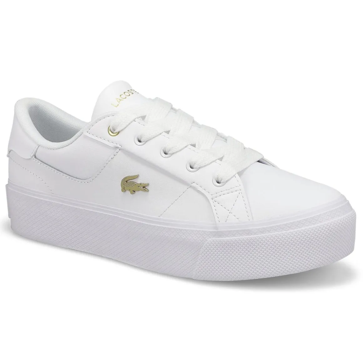 If you love collecting cool and stylish footwear, the Lacoste Ziane Platform white/gold sneakers are a perfect addition to your collection. Leather and polyurethane upper. Polyester lining and footbed. Brand’s signature name and icon on the tongue and upper. The Ziane Platform sneaker is designed with a synthetic outsole with added traction.
