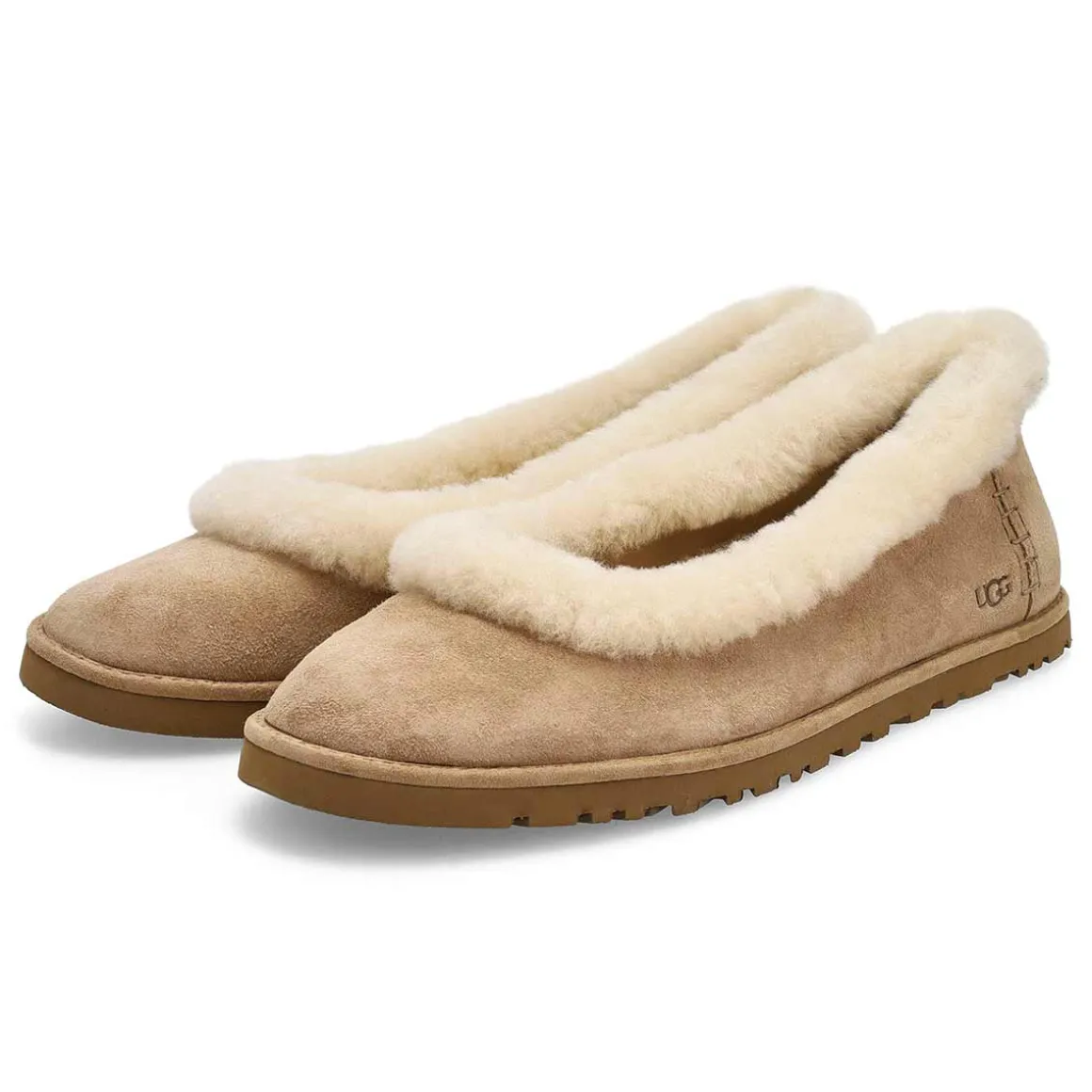 Your style is about to be en pointe with the Zora sand Ballet Flat from UGG. They took everything you love about ballet flats, and designed it the UGG way: with a suede upper, plush sheepskin and lamb sockliner, and a lightweight sugarcane EVA outsole. The Zora Balllet Flat helps blend that timeless ballet-flat style with UGG’s signature cozy comfort, making it the perfect transitional shoe. Year-round versatility means you can wear it barefoot in warmer months or cozy it up with socks in the cooler months.
